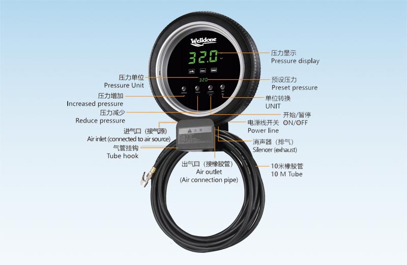 Tire inflator inside including air compressor ,10 meter filling air equipment ,and 10meter water equipment